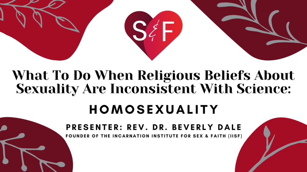 We have a dilemma when one's religion is teaching about sexuality in a way that can either harm our intimate relationships or damage our own self-esteem. Nowhere is this more evident than in teachings about homosexuality that ultimately leads to either shame and guilt or forced monogamy. Led by Rev. Dr. Beverly Dale, Founder of the Incarnation Institute for Sex & Faith (IISF) and Sex-Positive Movement Leader, this program will provide ways to rethink religious sex-negative teaching with a critical mind and how to reframe how one practices one's faith while also being sexually healthy.